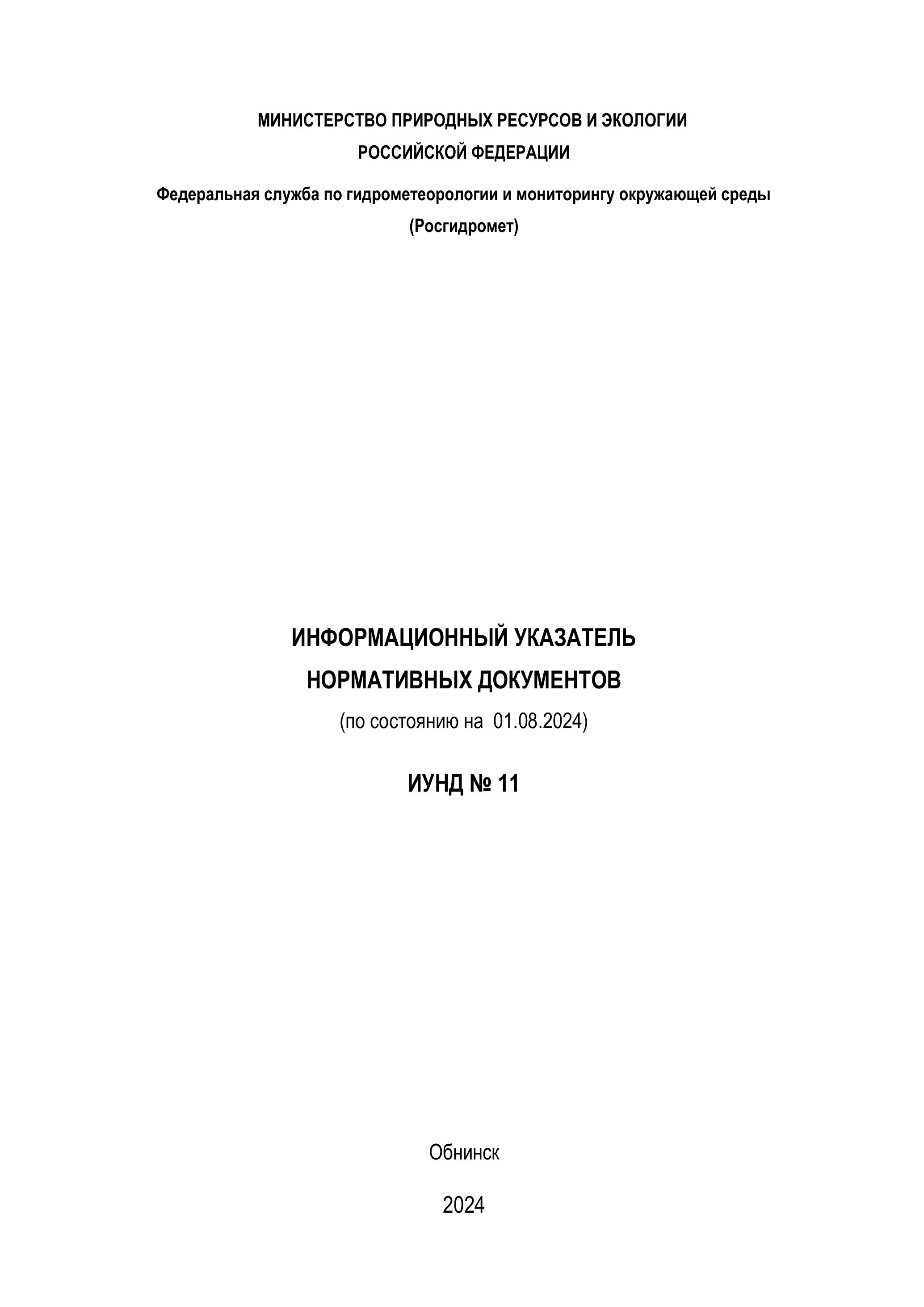 Информационный указатель нормативных документов (по состоянию на 01.08.2024) [Текст] : ИУНД № 11 / ФГБУ "Научно-производственное объединение "Тайфун", 2024. - 12 с.