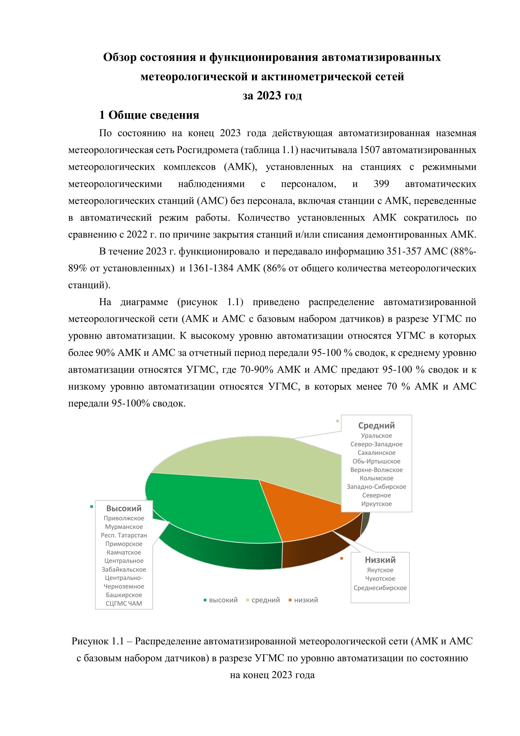 Обзор состояния и функционирования автоматизированных метеорологической и актинометрической сетей за 2023 год [Текст] / ФГБУ "Главная геофизическая обсерватория им. А. И. Воейкова". - 25 с.