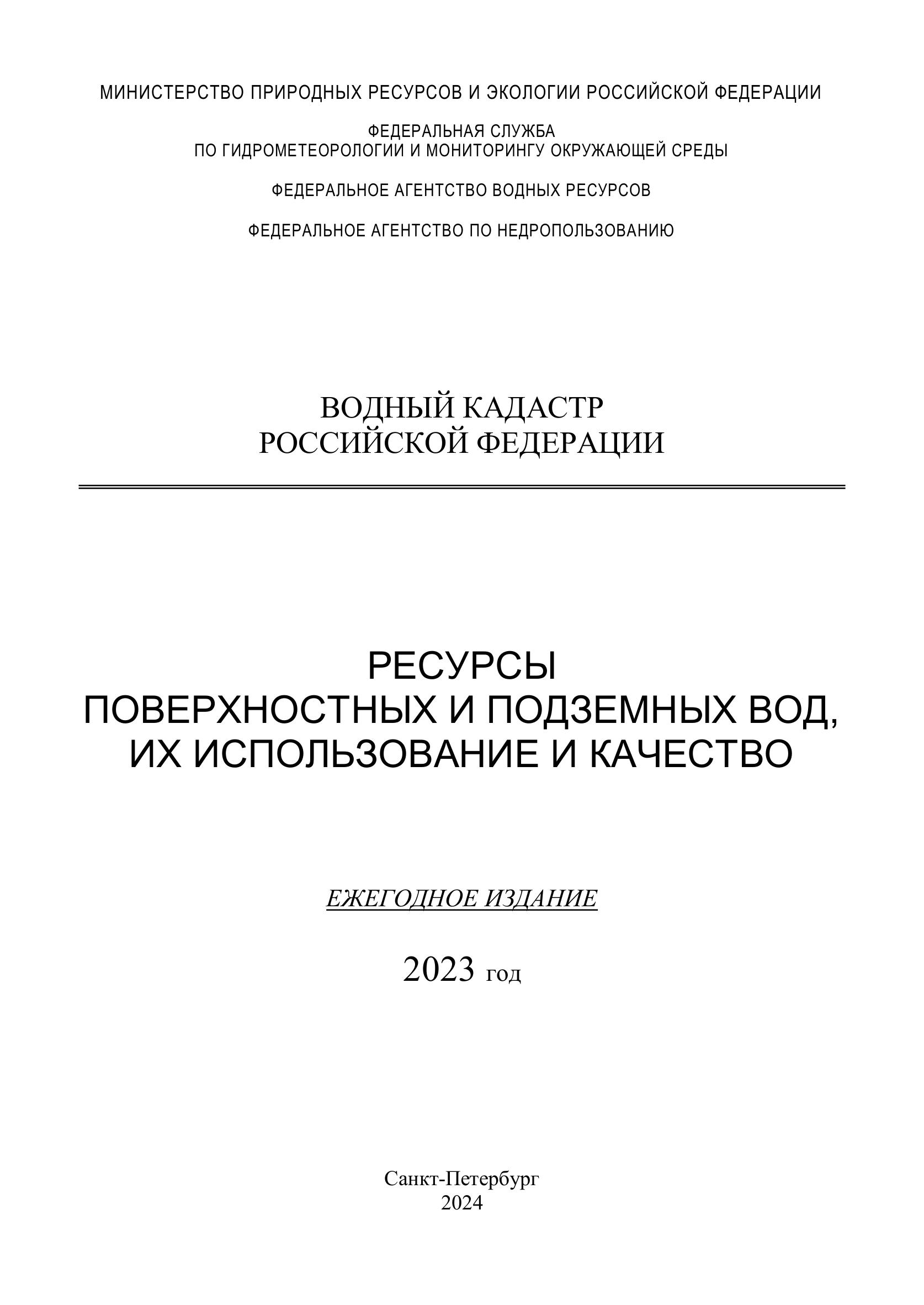 Водный кадастр Российской Федерации. Ресурсы поверхностных и подземных вод, их использование и качество [Электронный ресурс] : ежегодник / ФГБУ "Государственный гидрологический институт" , 2024. - 155 с.