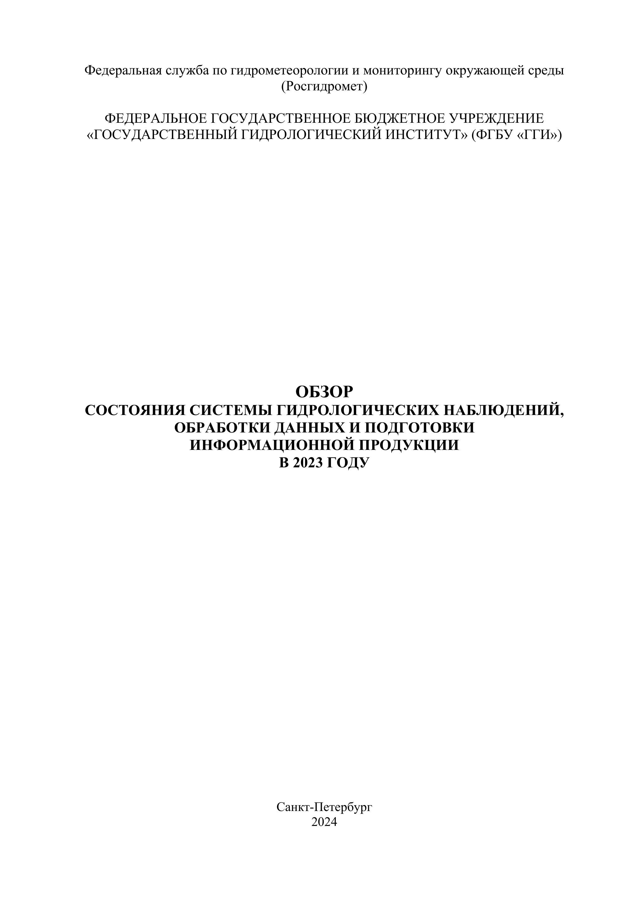 Обзор состояния системы гидрологических наблюдений, обработки данных и подготовки информационной продукции в 2023 году [Текст] : справочное издание / ФГБУ "Государственный гидрологический институт", 2024. - 74 с.