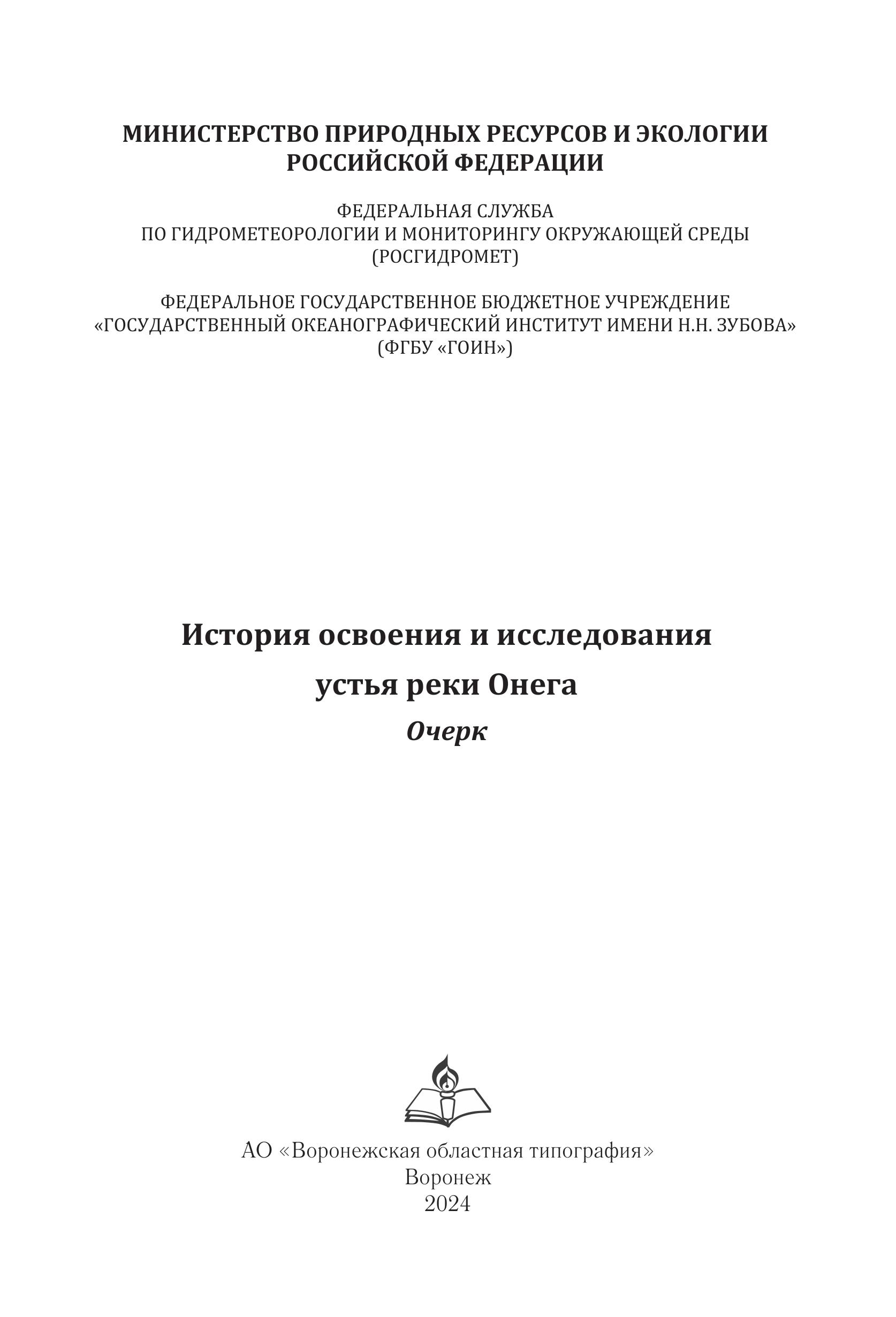 >> Ермакова, Г. С. История освоения и исследования устья реки Онега. Очерк : монография / Г. С. Ермакова ; ред. О. В. Горелиц ; рец. Л. В. Зубина ; ФГБУ "Государственный океанографический институт имени Н. Н. Зубова". - Электрон. текстовые дан. - Воронеж : ФГБУ «ГОИН, 2024 (АО «Воронежская областная типография»). - 95 с. : рис. - ISBN 978-5-4420-1152-4 : Б. ц. - Текст : непосредственный.
