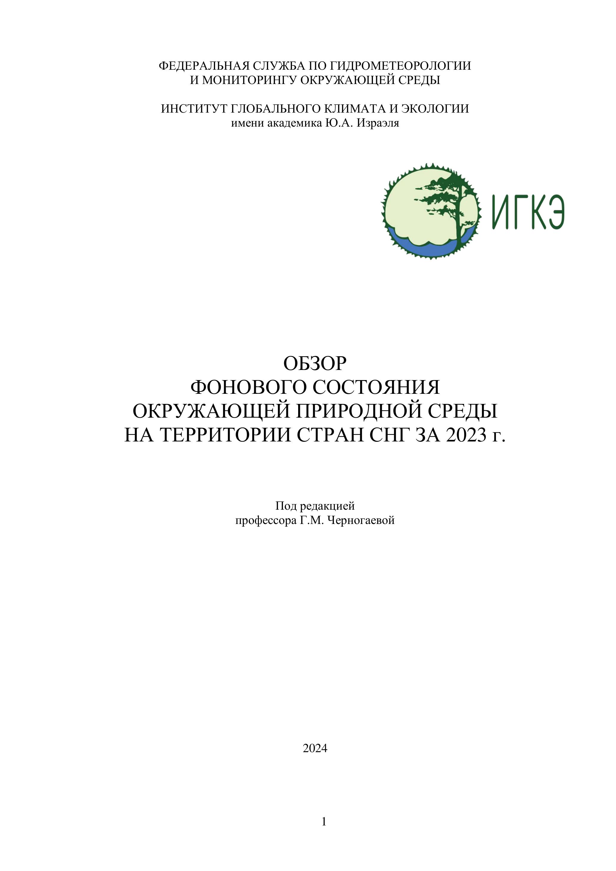Обзор фонового состояния окружающей природной среды на территории стран СНГ за 2023 г. [Текст] / ФГБУ "Институт глобального климата и экологии им. акад. Ю.А. Израэля", 2024. - 135 с.
