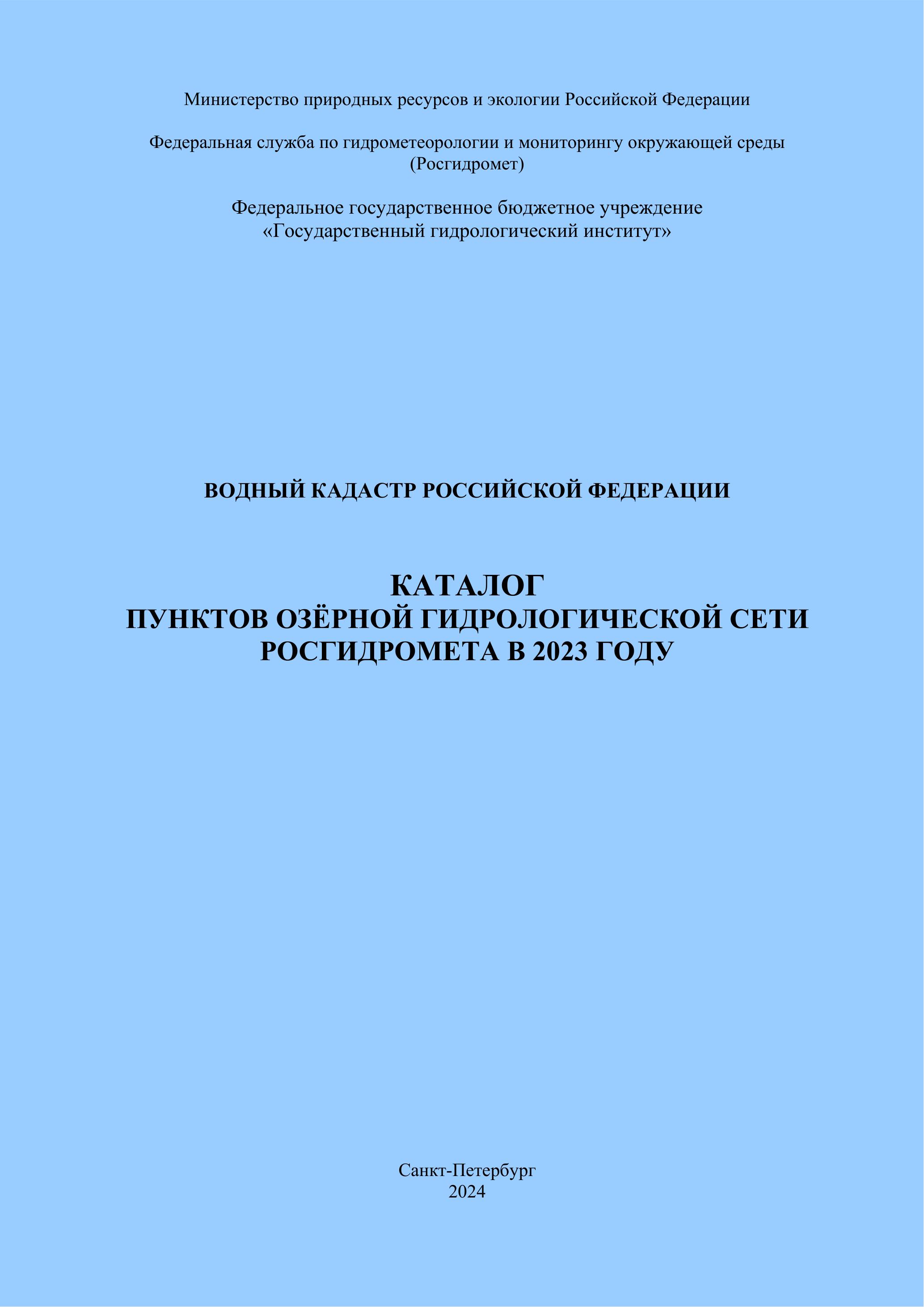 Водный кадастр Российской Федерации. Каталог пунктов озерной гидрологической сети Росгидромета в 2023 году [Электронный ресурс] : справочное издание / ФГБУ "Государственный гидрологический институт", 2024. - 59 с.