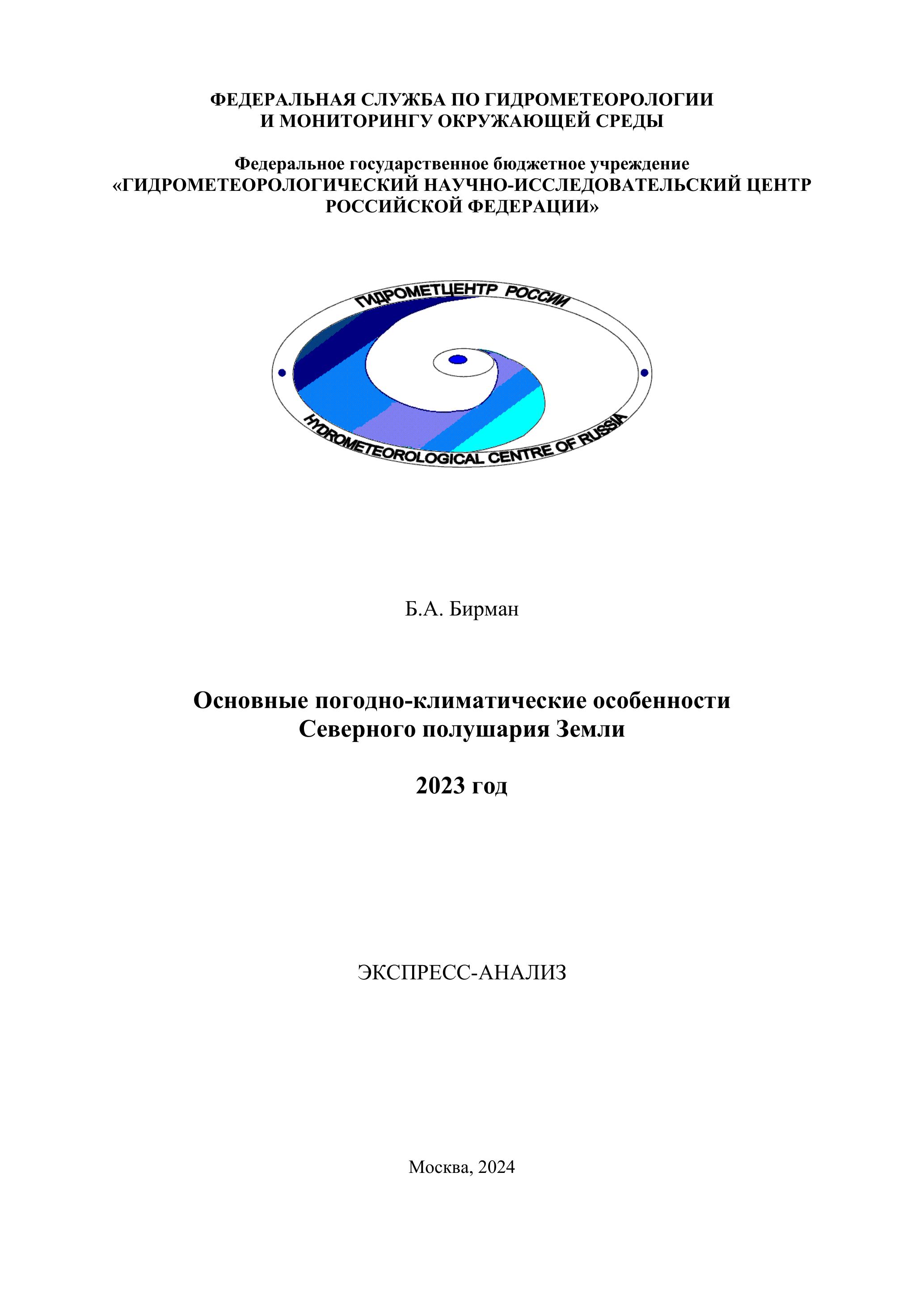Бирман Б. А. Основные погодно-климатические особенности Северного полушария Земли. 2023 год [Текст] : Экспресс-анализ / Б. А. Бирман, 2024. - 81 с.
