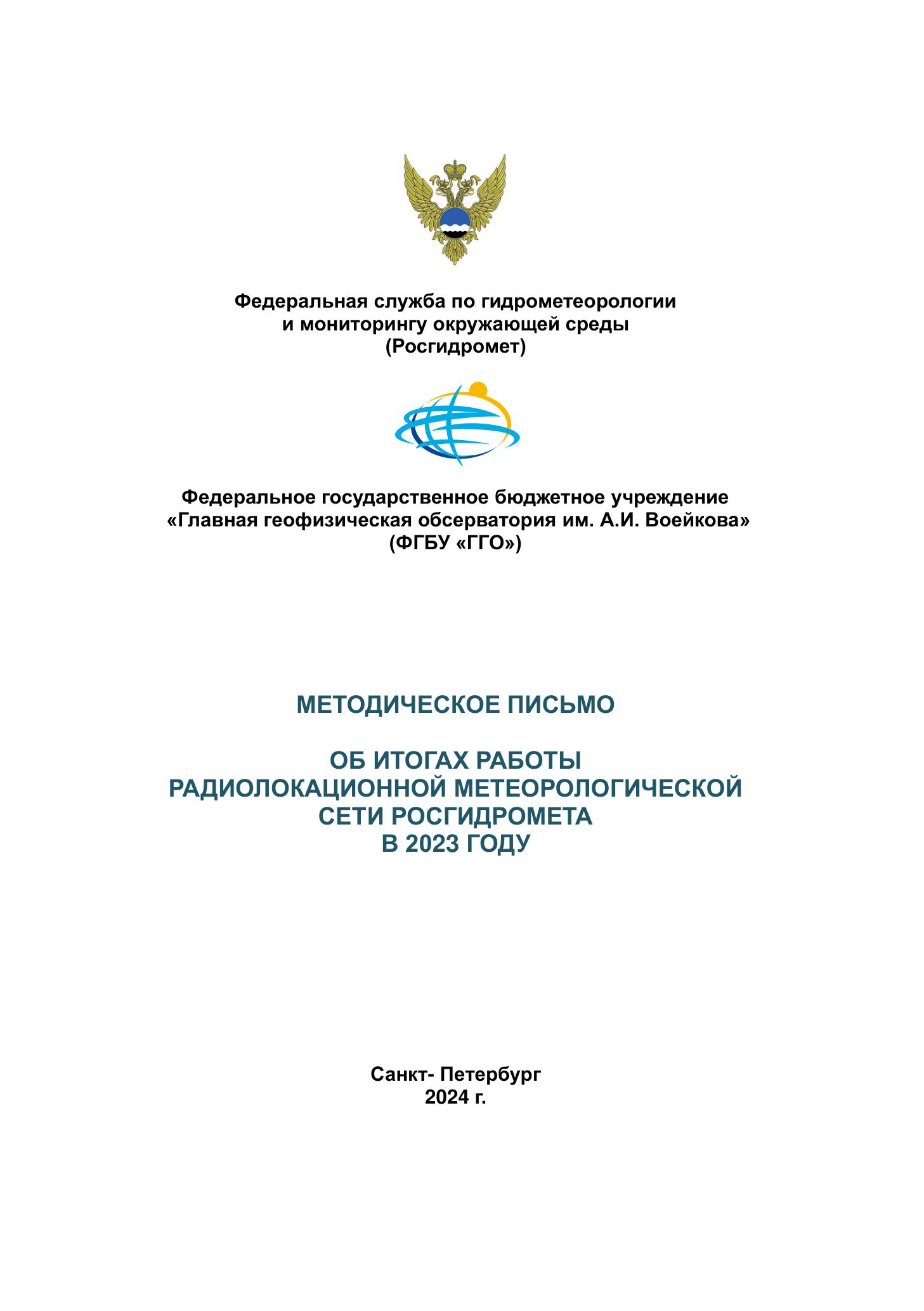 Методическое письмо об итогах работы радиолокационной метеорологической сети Росгидромета в 2023 году [Текст] : методические рекомендации / ФГБУ "Главная геофизическая обсерватория им. А. И. Воейкова", 2024. - 40 с.