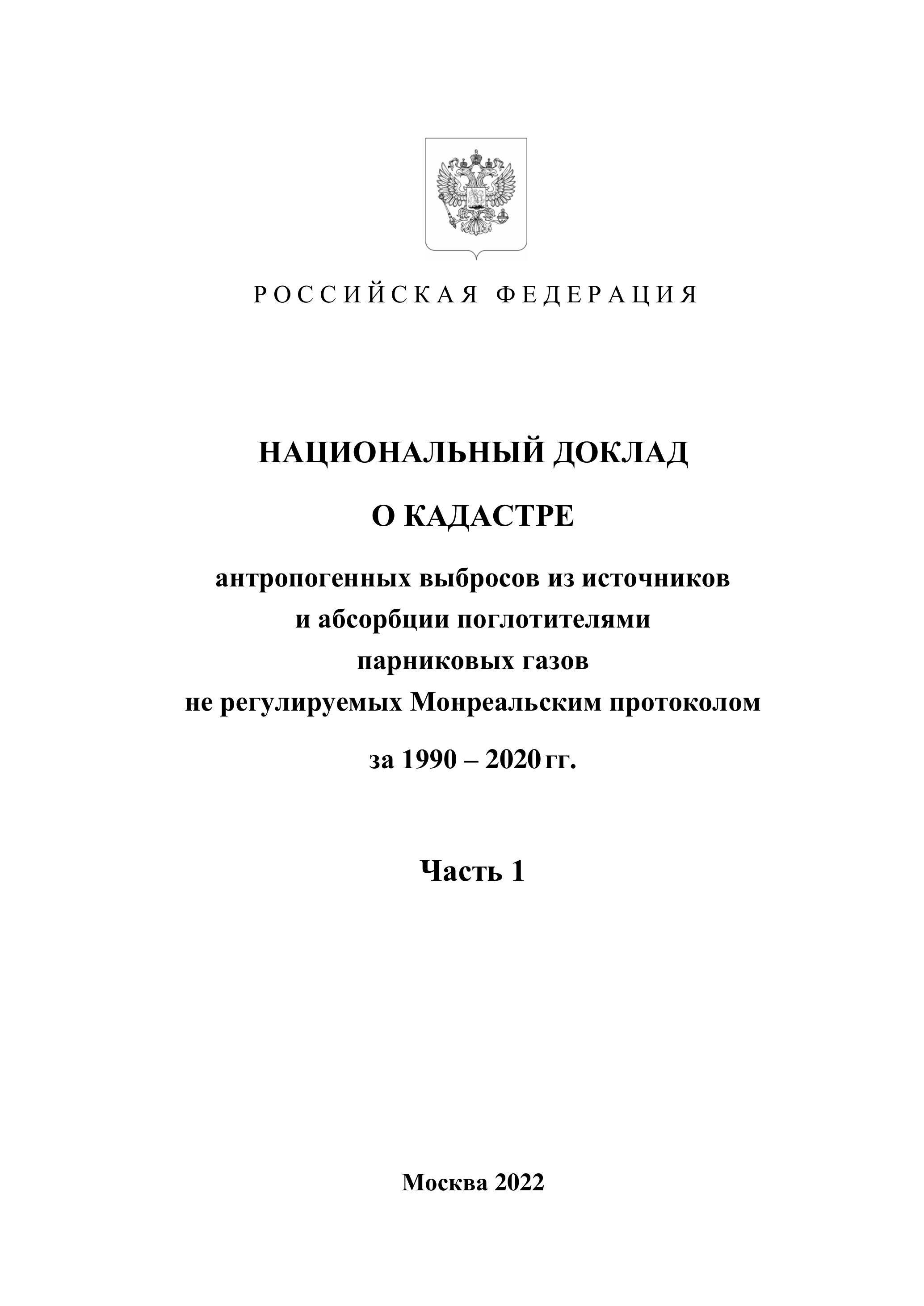 Национальный доклад о кадастре антропогенных выбросов из источников и абсорбции поглотителями парниковых газов, не регулируемых Монреальским протоколом за 1990-2020 гг. [Текст]. Ч. 1 / ФГБУ "Институт глобального климата и экологии им. акад. Ю.А. Израэля", 2022. - 468 с.