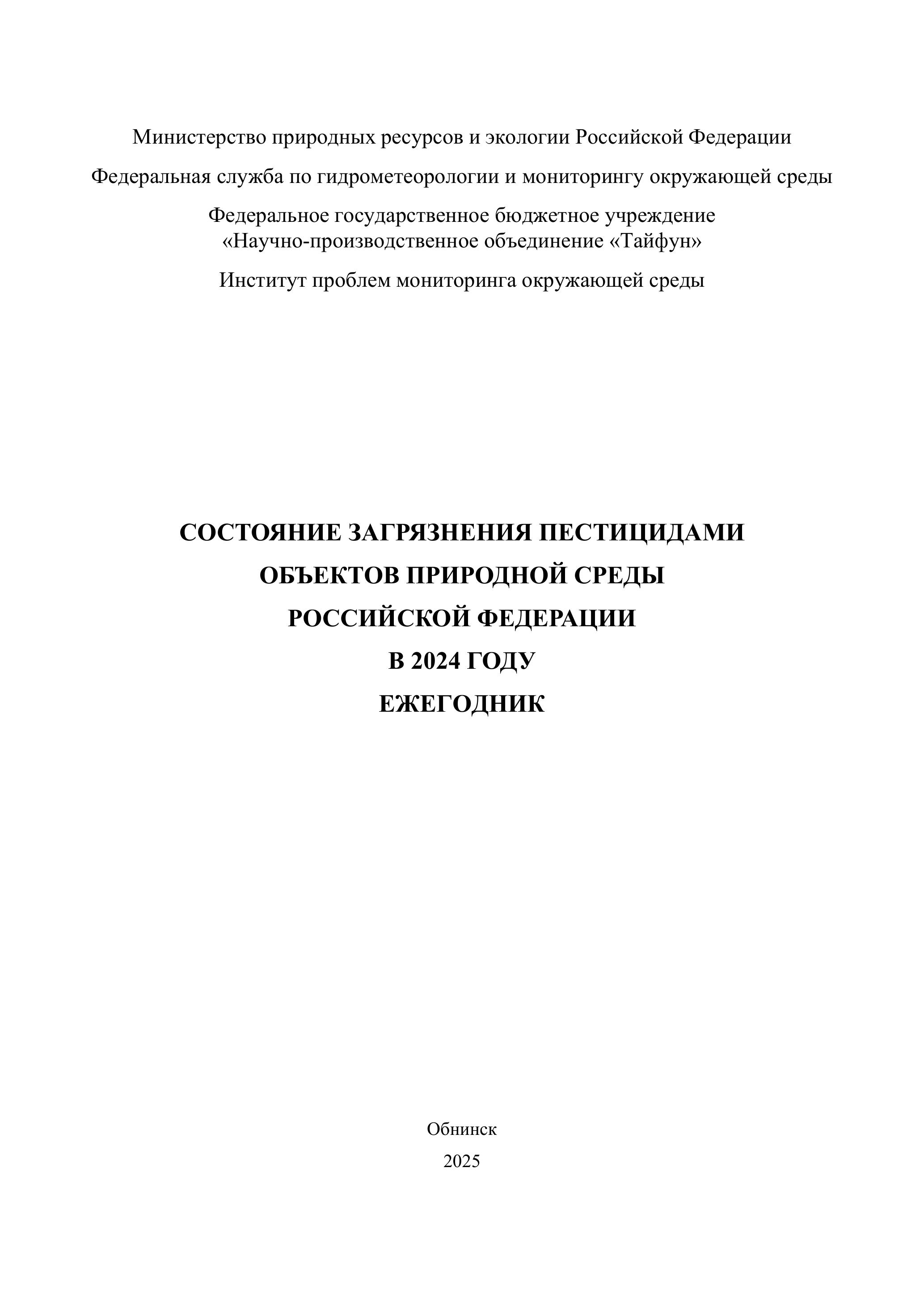 Состояние загрязнения пестицидами объектов природной среды Российской Федерации в 2024 году. Ежегодник [Текст] : ежегодник / Н. Н. Лукьянова , Н. И. Башилова , 2025. - 89 с.