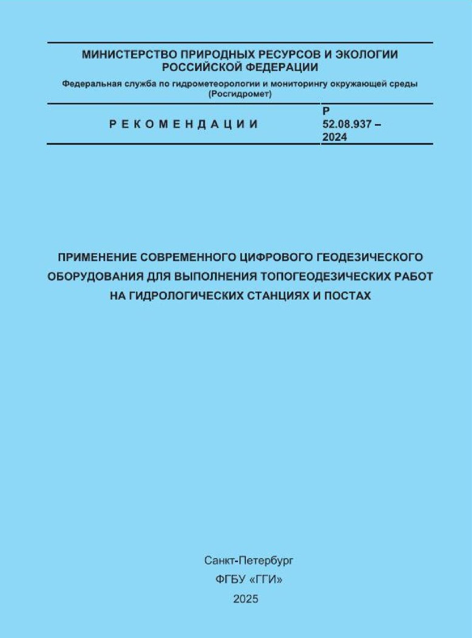 Р 52.08.937-2024 Применение современного цифрового геодезического оборудования для выполнения топогеодезических работ на гидрологических станциях и постах [Электронный ресурс] : Рекомендации Р 52.08.937-2024 / ФГБУ "Государственный гидрологический институт", 2025. - 126 с.