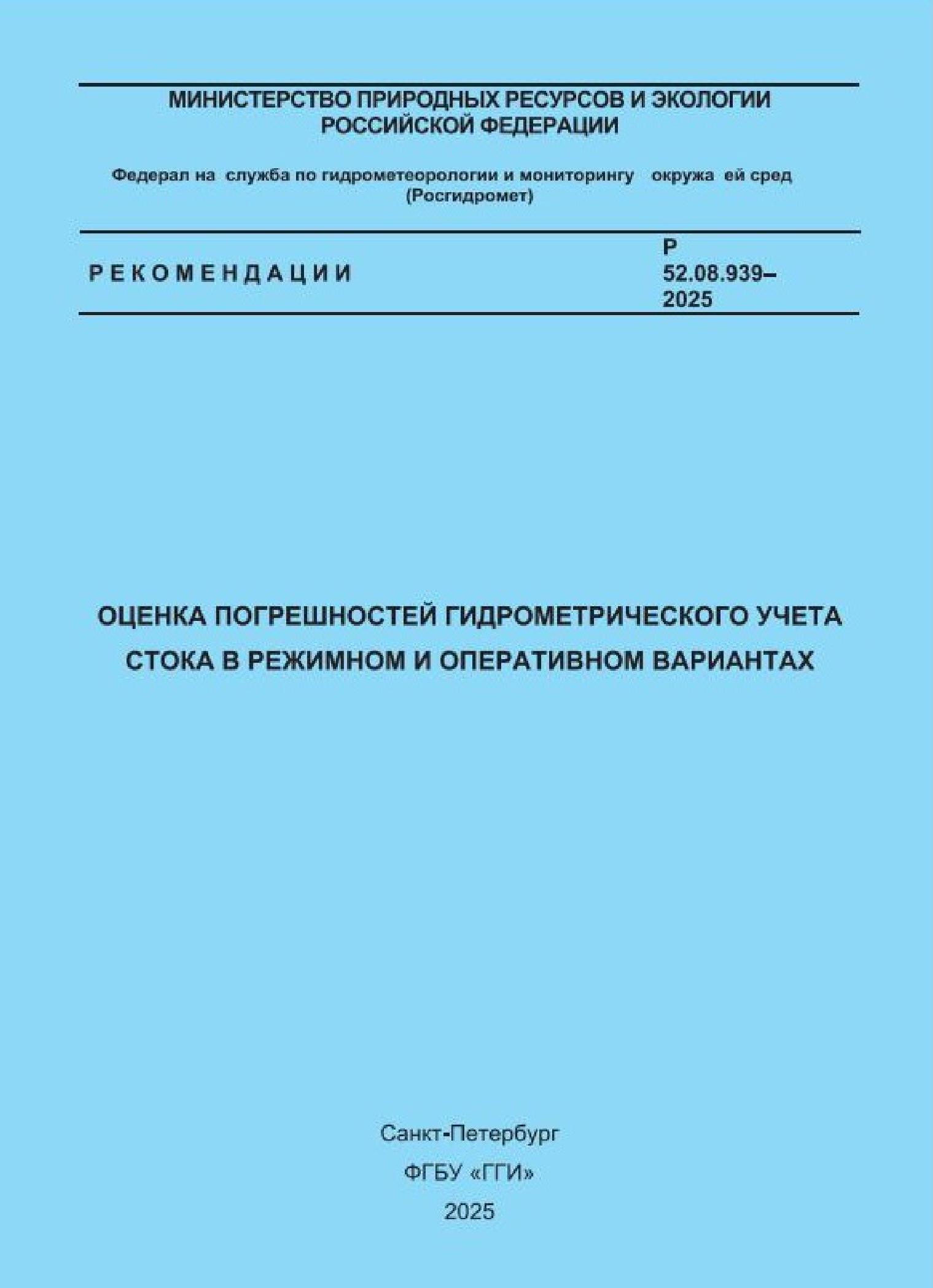 Р 52.08.939-2025 Оценка погрешностей гидрометрического учета стока в режимном и оперативном вариантах [Электронный ресурс] : Рекомендации Р 52.08.939-2025 / ФГБУ "Государственный гидрологический институт", 2025. - 80 с.