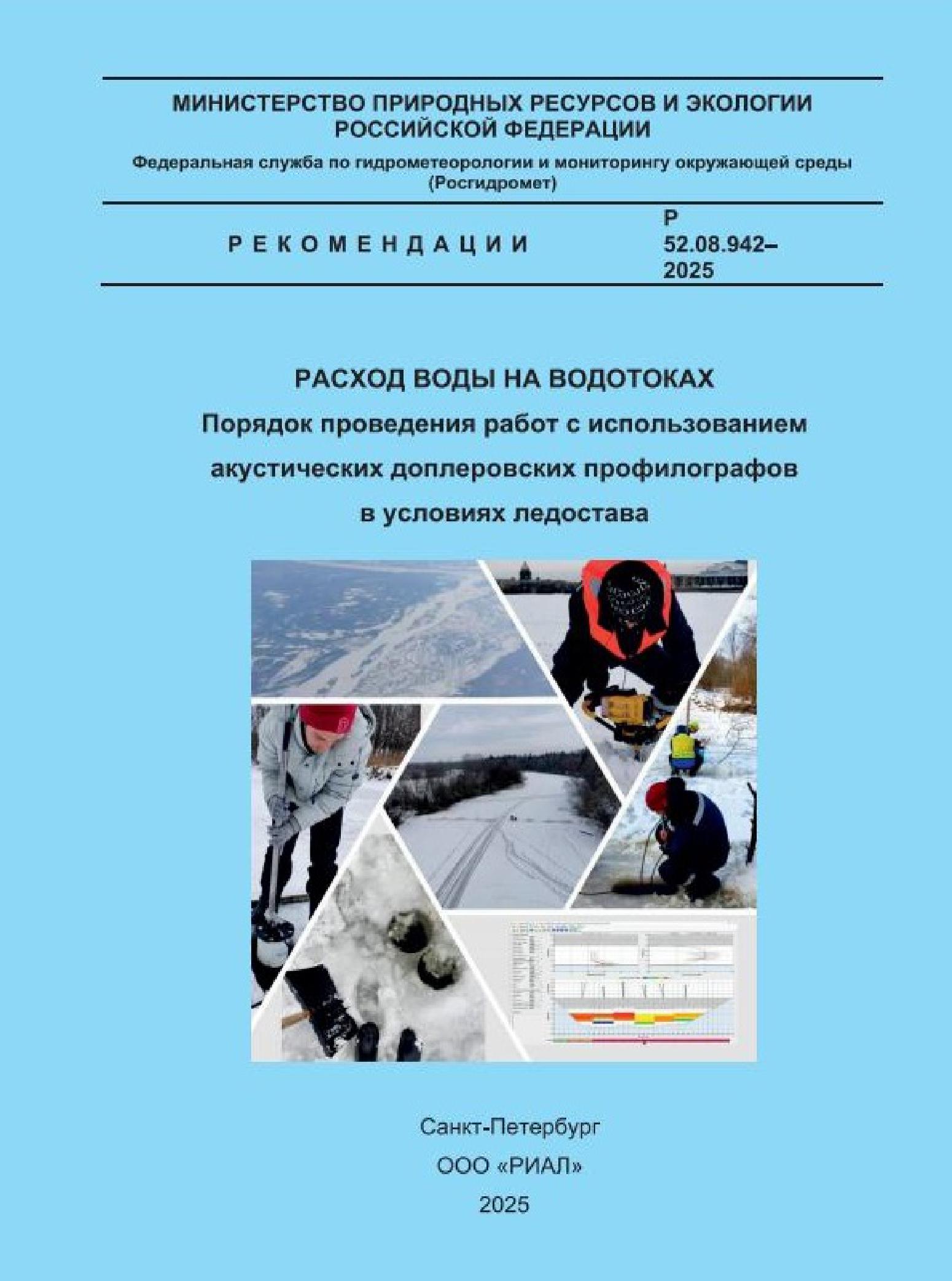 Р 52.08.942-2025 Расход воды на водотоках. Порядок проведения работ с использованием акустических доплеровских профилографов в условиях ледостава [Электронный ресурс] : Рекомендации Р 52.08.942-2025 / ФГБУ "Государственный гидрологический институт", 2025. - 79 с.